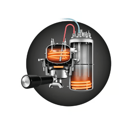 در قلب این دستگاه یک سیستم گرمایش دیگ دوگانه قرار دارد. دیگ بخار، برای شات اسپرسو، دمای PID را کنترل می کند، در حالی که یک دیگ بخار جداگانه بخار فوری و قدرتمند را در صورت نیاز ارائه می دهد. بنابراین می توانید شات خود را در دمای مناسب استخراج کنید و طعم مطلوبی را ارائه دهید و همزمان شیر خود را بخارپز کنید.