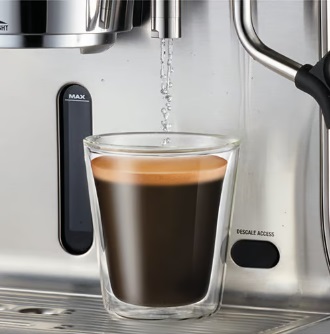 قهوه با بدنه کامل با طعم های غنی و پیچیده با استفاده از دوز ایده آل 22 گرم دانه های تازه آسیاب شده توسط یک پورتافیلتر فولادی ضد زنگ 58 میلی متری سبک حرفه ای ایجاد می شود.