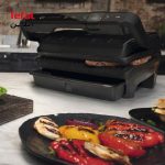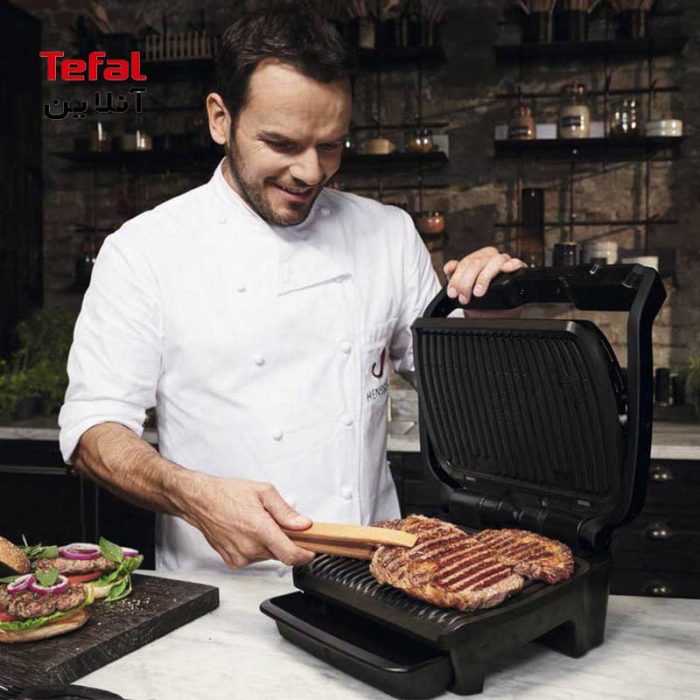 گریل و باربیکیو مدل GC750 تفال مشکی تنظیم اتوماتیک دمای کوره و چرخه کوره بسته به ضخامت و نوع غذا نمایشگر دیجیتال با دستورالعمل های