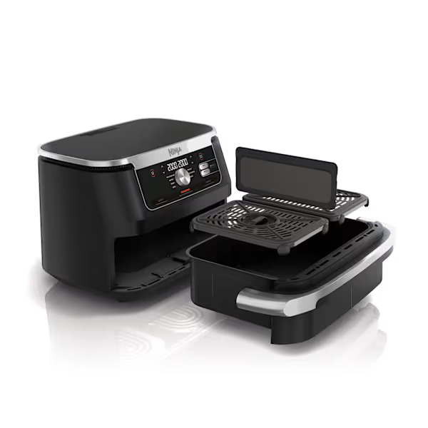 سرخ کن هواپز دوقلو AF۵00 نینجا با فناوری FlexDrawer در شکل طراحی سرخکنهای بدون روغن تحولی عظیم ایجاد کرده است. این مدل سرخ کن به دلیل داشتن دو سینی مجزا امکان آمادهکردن همزمان غذاهای متنوع با دما مختلف را فراهم میکند. برای مثال اگر میخواهید مرغ سوخاری همراه با سیب زمینی سرخ شده آماده کنید این دستگاه بهترین گزینه خواهد بود.